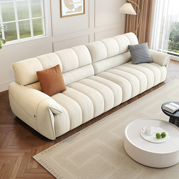 लिविंग रूम के लिए बेज सेशनल कूचलों के आकार के सोफे के आकार के सोफे के साथ चमड़े के आधुनिक मॉड्यूलर क्लाउड सोफे और टाइप सी चार्जिंग पोर्ट के साथ