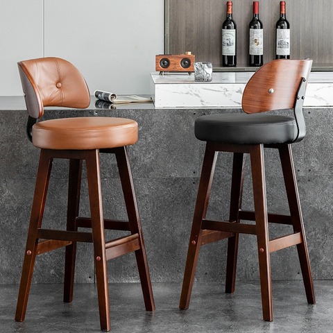 Европейский стиль твердый деревянный барный стул ретро кожа высокая прочность спинка стул для домашней кухни